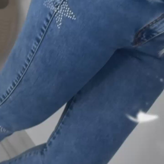 Jeans con alto ajuste de la cintura eleva los glúteos, mientras el tejido elástico se acomoda a tu anatomía, moldeando tu silueta con facilidad.
