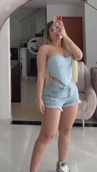 SHORT TIRO ALTO CON PEDRERIA TELA RIGIDA K4470♥️ENVÍO GRATIS♥️